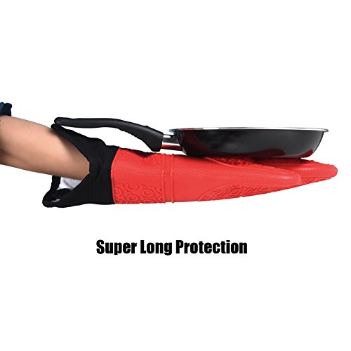 - Extra Long Protection-The mitts' longer length 14.6 inches are the perfect cooking companion as never again will you burn your fingers, wrists or forearms on hot pans or the stove door.