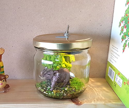 APPEARANCE: Adorable Miniature African Elephant scene in a small, high quality Glass Jar, Beautiful and lovely. Not only can be used as night light but also be used as a Nursery decorative item on day time. Comes in an exclusive open window gift box.