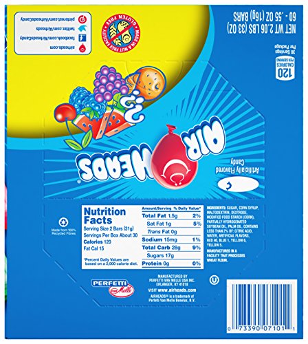 There are 60 Airheads bars in every box. These aren’t your parent's Airheads! We’ve worked REALLY hard to make our bars softer and the flavors more intense. We know you’ll fall in love with them all over again. All items are Peanut-free and includes Peanut-free labeling. Moms don’t have to worry about allergies.