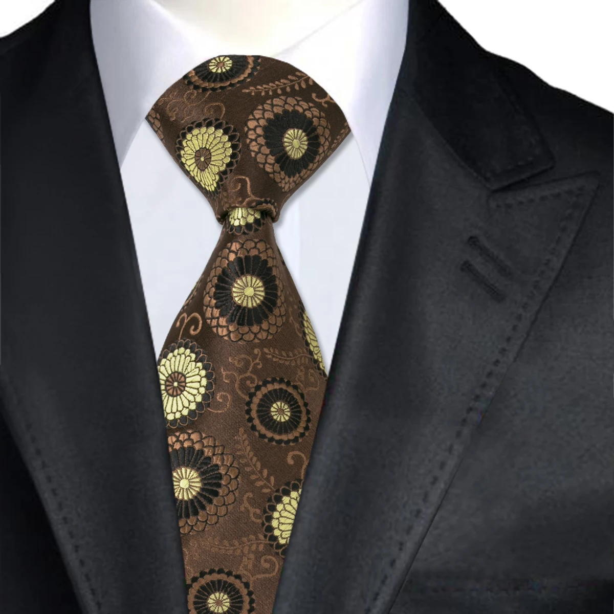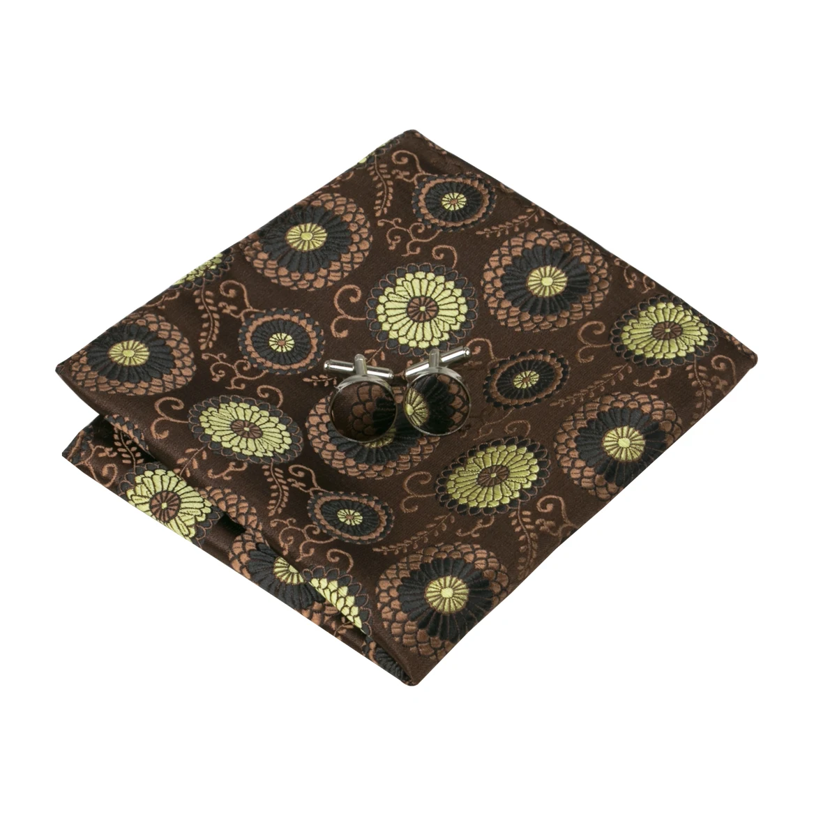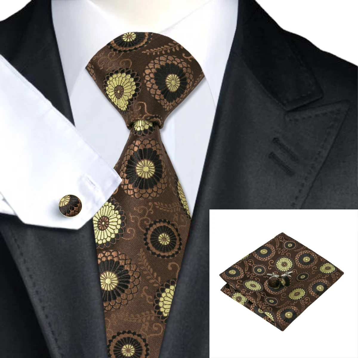 | [해외]SN-1562 남성 넥타이 갈색 꽃 Gravatas 새로운 브랜드 하이 넥타이 디자인 Corbata 포켓 스퀘어 커프스 세트 실크 목에 넥타이 남성 |