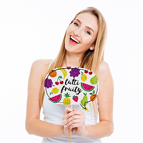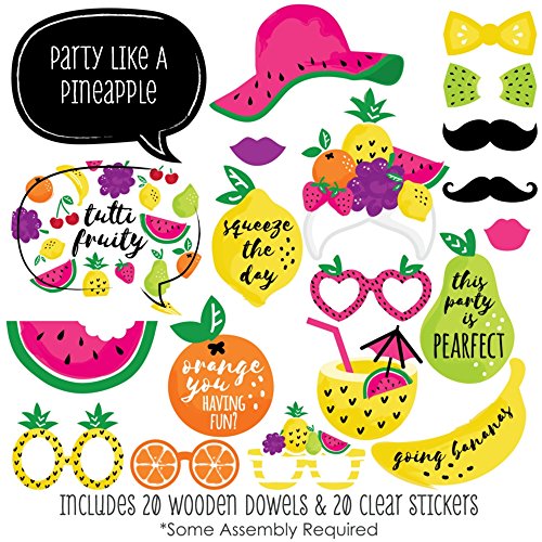 20-Piece Baby Shower or Birthday Party Photo Booth Props Kit INCLUDES 20 Tutti Fruity photo booth props, 20 wooden dowel sticks and adhesives for assembly. EASY ASSEMBLY: Simply attach the printed DIY photo booth props to the wooden dowels with included adhesive and reinforcing stickers.