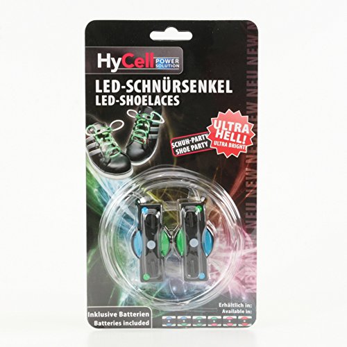 HyCell Luminous multi-color LED-Shoelaces 31inch (on, fast blink, slow blink) Lights up in a beautiful mix of green/blue (For 2 Pair of Shoes)
