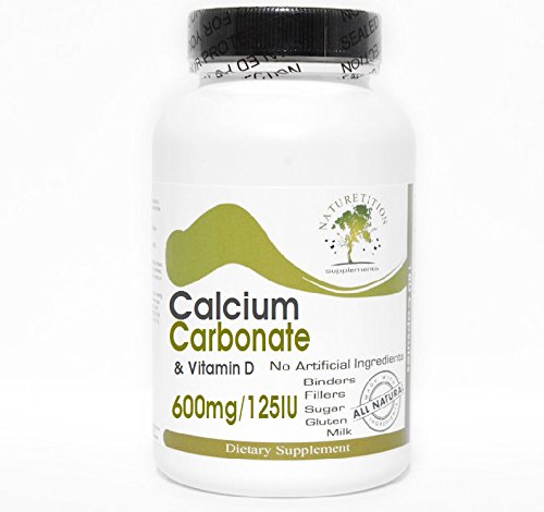 -. Feature : Calcium Carbonate 600mg / Vitamin D 125IU ~ 200 Capsules - No Additives ~ Naturetition Supplements / The product does NOT contain: Preservatives, artificial coloring, artificial flavor, yeast, corn, milk or milk derivatives, lactose, salt, sodium, soy, sugar, gluten, starch or wheat. / Best Quality. / Made in USA / 100% Natural. Other Ingredients: Gelatin, Rice Powder.