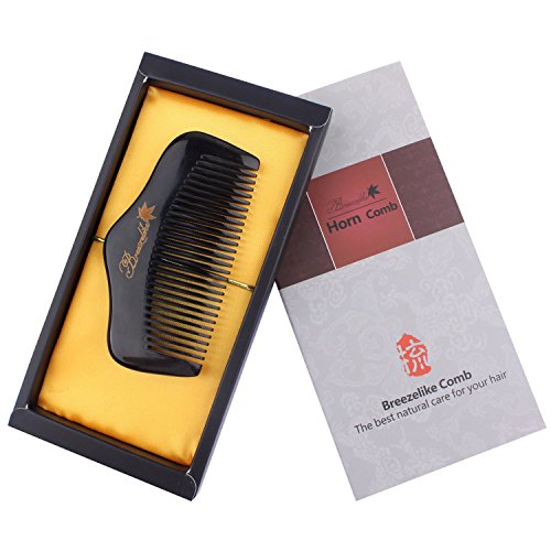 Breezelike Small Hair and Beard Comb - Natural Black Buffalo Horn Comb - No Static Fine Tooth Pocket Comb for Men, Women and Kids