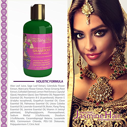PREMIUM QUALITY & REPRESENTATION: EACH ITEM COMES IN A BOX.Amazing Jasmine Hair Nourishing Anti-Hair Loss Shampoo was designed for dry brittle hair to reduce hair loss and promote hair growth, help to normalize oil production in the scalp and reduce irritation and flakes.