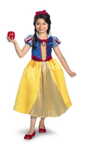 -. Feature : Size: Child XS(3T-4T), S(4-6x), M(7-8) / Beautiful Lamé fabrication / Long full dress / Headband included / Snow White cameo on dress
