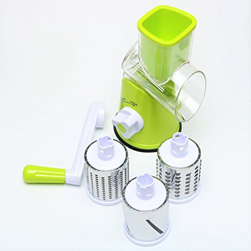 Edofiy Manual Speedy Rotared Vegetable Fruit Cheese Nut Slicer Cutter Shredder Grinder With 3 Interchangeable Round Stainless Steel Blades