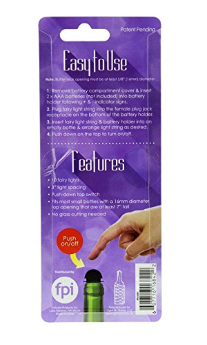 HOW TO USE- Insert fairy light string and battery holder into the top of the bottle, and simply press on the top to turn on