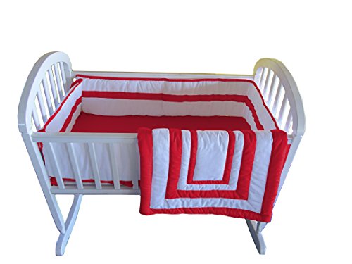 ReleaseDate : 2015-11-04 Studio : Baby Doll Bedding Publisher : Baby Doll Bedding Binding : Baby Product Product Description For that handsome and neat look. This modern hotel style cradle beddings set in red is made of a combination of white poly/cotton fabric and red poly-cotton fabric. A soft comforter and cozy bumper and fitted sheet are included to clothe your cradle. Fully manufactured in the USA. 0
