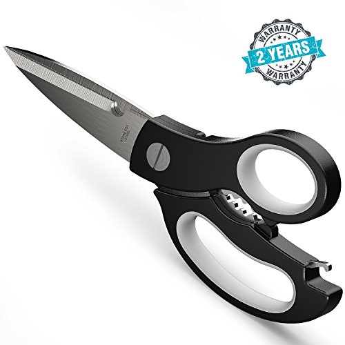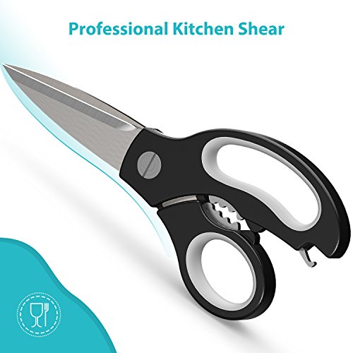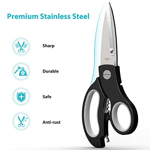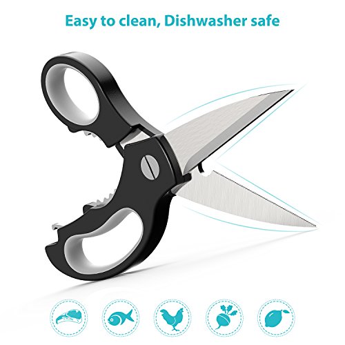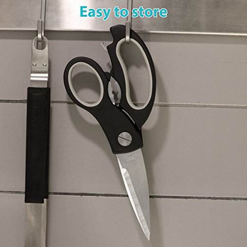 Multi-Function Kitchen Scissors-Complete Kitchen&Outside Tasks Perfectly: The well-made Heavy Duty Kitchen Shear is super easy to make precise cuts of most kinds of food, bones, cutting meat, butterflying poultry, chicken, scraping the scales of fish, cutting vegetables, fruit, various foods, herbs, etc. With excellent performance, you'll use it for many outside tasks, cutting cardboard, paper, hard plastic, trimming the limbs of trees, pruning the rose bushes.