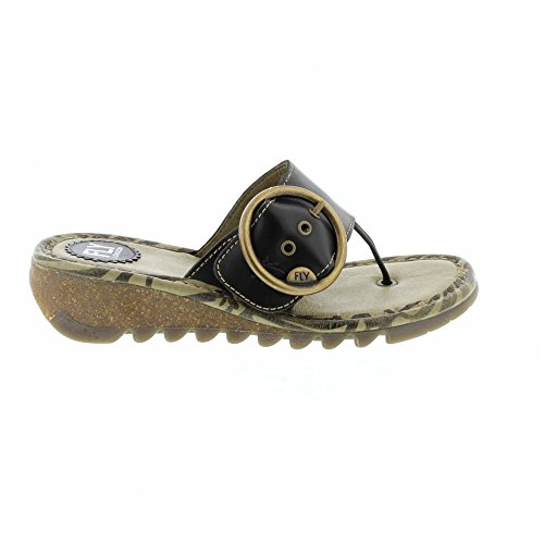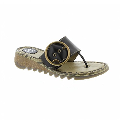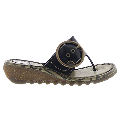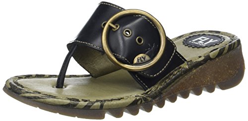Studio : Fly London Publisher : Fly London Binding : Apparel Product Description Put your best toe forward with stylishly good looking Trim., wedge style, flip-flops. Created by Fly London, jet black, leather upper sliders for women will keep you comfortable all day long. Easy to put on and easy to adjust, oversized round buckle allows for wide range of fit. Lined with soft leather, thong wedges will stay breathable and padded insole will cushion the walk. Rubber sole reaches 1.5 inches at the heel, creating a flattering lift and maintaining stability. Well defined traction pattern will secure the durability and traction of this Portugal made, summer sandal. 0