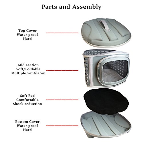 -. Feature : ✅ PERFECT SIZE FOR A TRIP TO VET: A pet carrier that gives you the best features of both hard and soft carriers! 17" long by 13" high by 14" wide, it's suitable for cats, small dogs, and other pets. / ✅ HARD BASE & PROTECTION: A hard top and hard base give you sturdy protection for your pet, and gives your pet a firm surface to stand on. / ✅ EASY FOR STORAGE: The soft sides can be folded down so the whole carrier fits into a neat little package -- just the top and bottom zippered together. Takes up very little storage space while it's not in use. / ✅ COMFORTABLE INSIDE: A padded mat in the floor gives your pet a comfortable place to lie down and a non-slip surface to stand on. A see-through mesh door lets him or her keep an eye on the world outside. / ✅ EXTRA-SAFE & BREATHABLE: The carrier is made from premium materials, YKK zippers, and panels of tough but breathable mesh.