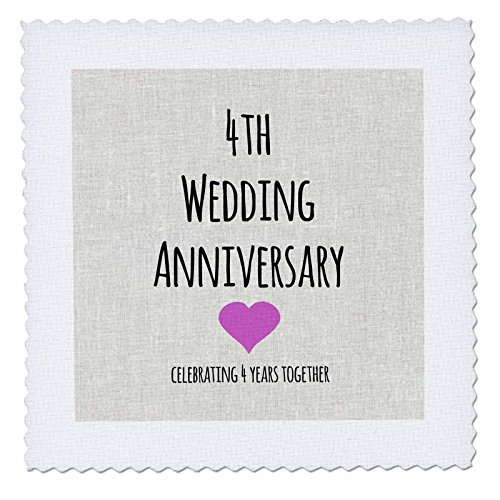 3dRose qs_154431_4 4Th Wedding Anniversary Gift Linen Celebrating 4 Years Together Fourth Anniversaries Four Yrs Quilt Square, 12 by 12-Inch