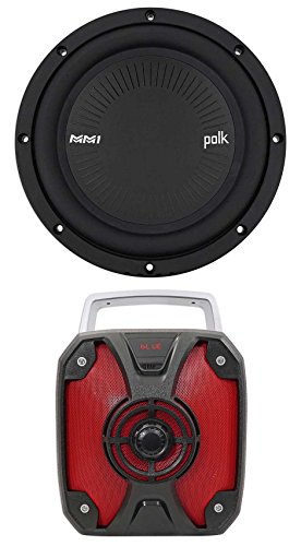 -. Feature : Package Includes : Polk Audio MM842SVC 8" 900 Watt Single 4-Ohm Car or Marine Subwoofer + Rockville ROCKBOX 6.5" 100 Watt Rechargable Bluetooth Speaker with USB and SD / Polk Audio MM842SVC 8" 900 Watt Single 4-Ohm Car/Marine Boat Audio Subwoofer Sub . Driver Compliment: 8" (203.2 mm). Cutout Dimensions: 7.2" (185mm). Mounting Height: 0.55" (14.06mm). Mounting Depth (Top): 4" (105mm). Mounting Depth (Bottom): 4.68" (119mm). Peak Power Handling: 900 Watts. Continuous Power Handling: 300 Watts. Nominal Impedance: 4 Ohms. Frequency Response: 30Hz-200kHz. Sensitivity: 85 dB. / Rockville ROCKBOX 6.5" 100 Watt Multi-Purpose Portable Powered Bluetooth Speaker w/USB/SD/Radio . Rechargeable 6000mAH lithium battery lasts 24 hours (exact battery operation depends on volume, and what source you are using, but this battery is about 500% larger than our competitors). 100 Watts Peak Power / 50 Watts Program Power / 25 Watts RMS Power. Built in Bluetooth to stream your music wirelessly (65 foot range!) / Built in USB music playback (supports up to 16 GB) (USB will also charge your phone or other device). Built in SD card playback (supports up to 32 GB). 3.5MM Aux input. ¼" Mic input. Built in FM radio tuner with memory presets (Radio requires an aux cable to be plugged in to get reception). Volume control, bass, treble, mic volume control, and echo control knobs. Frequency response: 40HZ - 18KHZ. 6.5" woofer and 1" tweeter built in. / On-the-go system is perfect for the beach, bedrooms, bathrooms, work, computer speaker, and more. Enclosure is made of high quality ABS material that is very durable and can take a good beating. No distortion even at max level listening!. Digital LCD display screen . Built in highly efficient amplifier puts out a lot of power and draws very little current from the battery. Metal grille to protect the speakers. Distortion: ≤0.5%.
