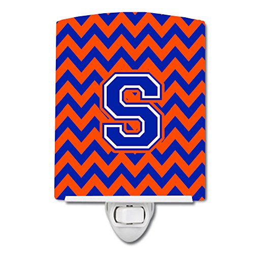 Caroline's Treasures Letter S Chevron Orange and Blue Ceramic Night Light, 6 x 4", Multicolor