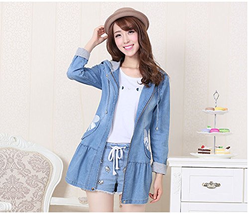 (체리 레드) CherryRed 레이디스 패션 코트 트렌치 상질 정확히 느낌 데님 귀엽 초미형 슬림 대베스트 큰 사이즈 추?겨울에 대활약 블루/핑크/그레이 S/