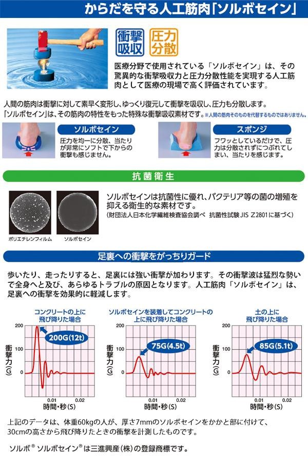 医療分野で使用されている人工筋肉「ソルボセイン」による優れた衝撃吸収力で足・膝・腰のトラブルを軽減します。フローリングなどの室内での家事に。 |