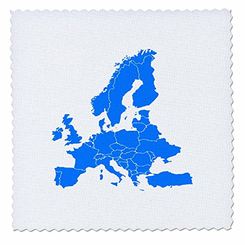 3D Rose Image of Map of Europe in Pretty Blue Quilt Square, 25 x 25"