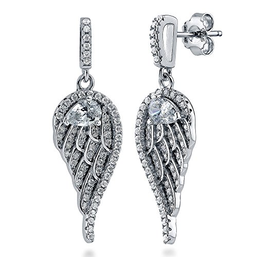 -. Feature : METAL: rhodium plated .925 sterling silver, stamped 925, high polished finish, nickel free. / PREMIUM QUALITY STONE: Main Stone: 1.17 carat pear cut clear cubic zirconia (6mm x 4mm), Side Stones: 0.82 carat round cut clear cubic zirconia (1.25mm), Accent Stones: 0.60 carat cubic zirconia / STYLE: This 2-piece angel wings earrings and pendant necklace set will encourage you to use your wings and follow your dreams.