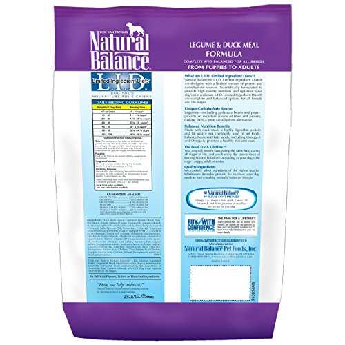 Natural Balance L.I.D. Limited Ingredient Diets Legume & Duck Meal Formula Dry Dog Food, 12-Pound