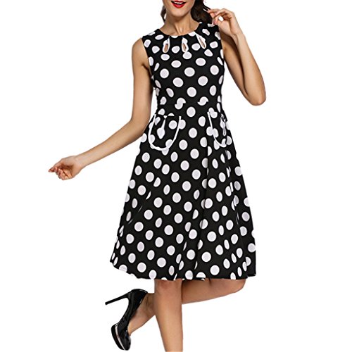 Adorable polka dot spread all over the dress, tank silhouette with sleeveless