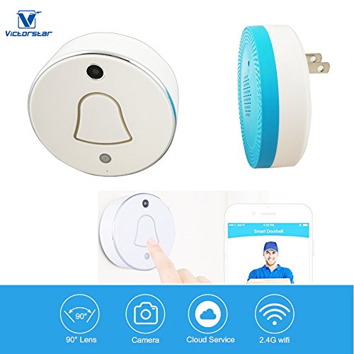 Smart Wireless Doorbell with WiFi Camera - Automatically Takes Picture When Pressing Bell-push / VICTORSTAR SDB-01 / 1 Outdoor Device + 1 Indoor Plug-in Receiver / Cloud Storage for Your Smartphone