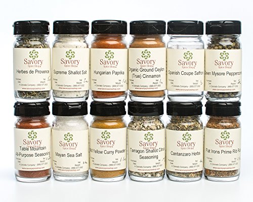 -. Feature : Classic and Innovative Spice Value Pack / This gift set contains the following products in small glass jars (2floz): Tarragon Shallot Citrus Seasoning, Table Mountain All-Purpose Seasoning, Green Mysore Peppercorns, Cantanzaro Herbs, Organic Ceylon Cinnamon, Supreme Shallot Salt, Herbes de Provence, Spanish Coupe Saffron, Mayan Sea Salt, Hungarian Paprika, Mild Yellow Curry Powder, and Flat Irons Prime Rib Rub / The spices and seasonings in our Savoir Faire spice gift set capture an array of flavors that are both classic and innovative.