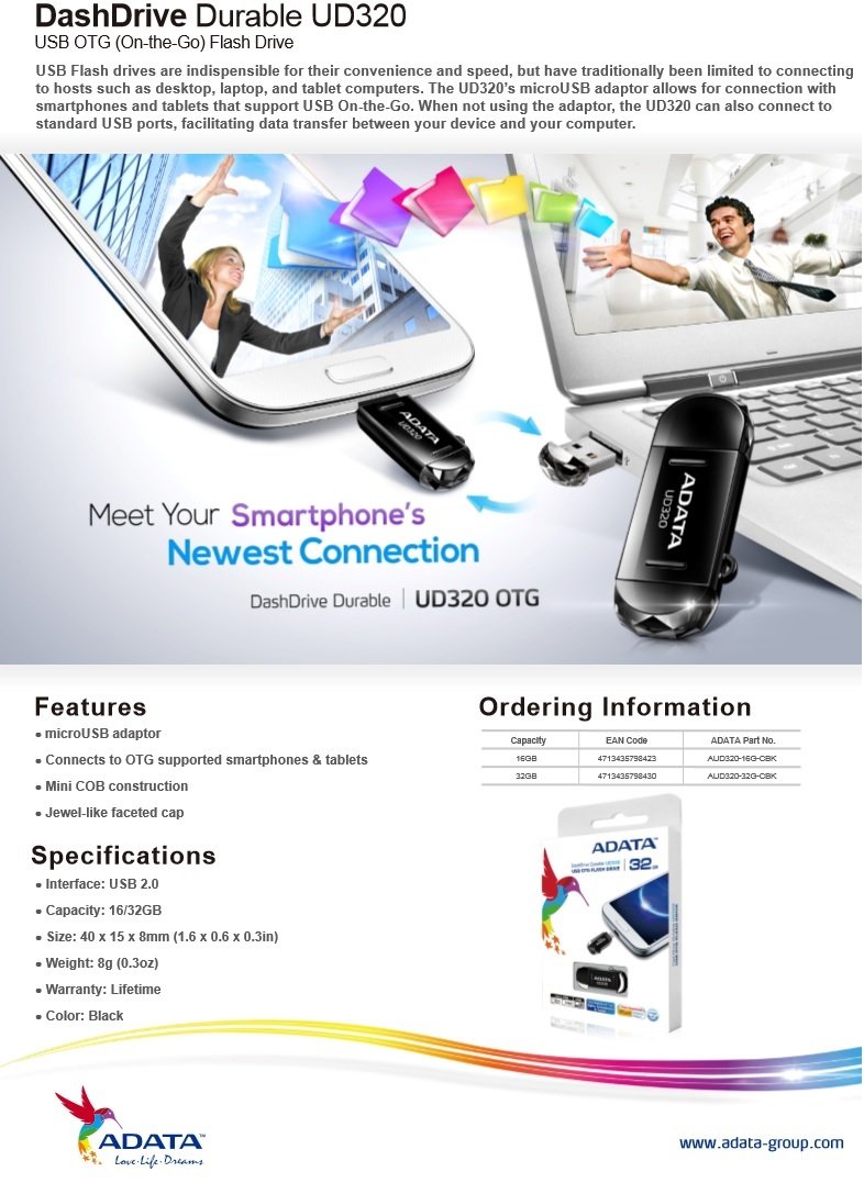 ADATA USA DashDrive Durable UD320 USB Flash Drive OTG (AUD320-16G-CBK)