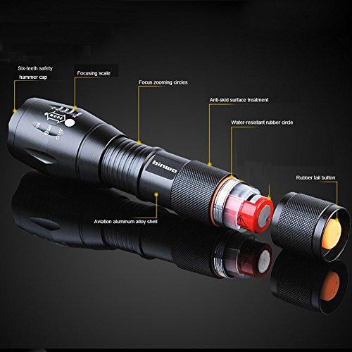 Binwo Super Bright 2000 Lumens Rechargeable Handheld Mini CREE LED Flashlight, Zoom Lens with Adjustable Focus, 5 Modes, - A Dependable Tool for Hiking, cycling, Camping and other Outdoor Sports