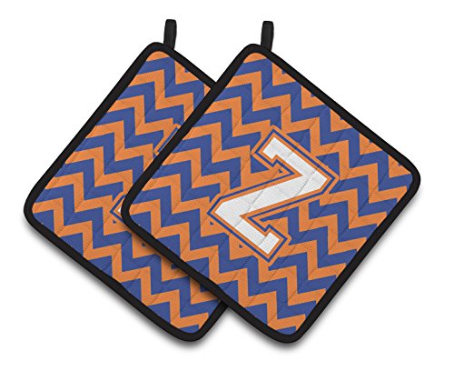 Caroline's Treasures Letter Z Chevron Blue & Orange #3 Pair of Pot Holders CJ1060-ZPTHD, 7.5HX7.5W, Multicolor