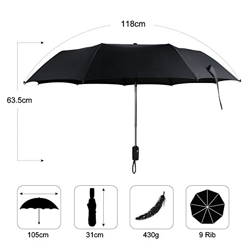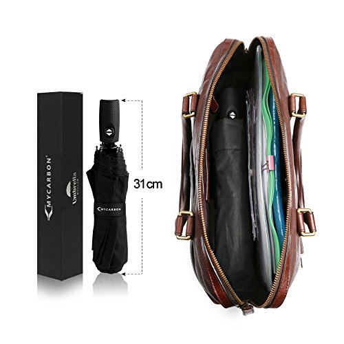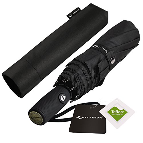 -. Feature : ☂【Dupont Teflon Technology-Strong Travel Umbrella】210T high-density water repellent fabric windproof umbrella can protect you from the rain and wind with Dupont Teflon technology. Effective to prevent rainwater from infiltration,easy to shake off the raindrops and keep you dry. / ☂【9 Ribs Construction-10 Levels Windproof Umbrella 】MYCARBON 9 Ribs are made of resin-reinforced fiberglass that flex slightly to withstand powerful gusts but not break or invert easily,then easy to recover without damage to the compact umbrella frame even if the Umbrella canopy blow invert by sudden gusts because of its durability, quality and great performance. / ☂【UV Protection UPF 40+ Travel Umbrella】For its sunscreen function,this sun umbrella can protect you against the intense ultraviolet light,and fully open 46.5'' (118 cm) coverage can keep your body cool and skin perfect,large umbrella for two people,romantic for you and your lover. / ☂【Automatic & Compact & Lightweight-Folding Umbrella】Auto open & close function for one-handed operation,allows you to stay dry when get into the car.Folded length 31cm/12.2''and weight only 430g/0.95Ib for easy storage in handbag,briefcase,backpack or luggage. / ☂【Various Usage Situations-Gift Umbrella】Easy to carry and good companion for school,work,hiking,camping,hunting,travelling,business trip and more.As for its practicability,ideal gifts for friends and family,suitable compact golf umbrella for both men and women.And we offer ONE YEAR WARRANTY,please feel free to use it.