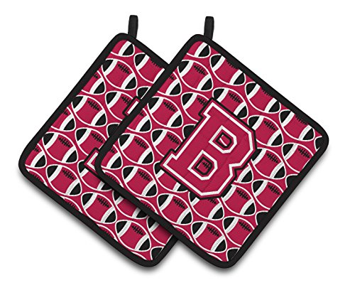 Caroline's Treasures Letter B Football Crimson & White Pair of Pot Holders CJ1079-BPTHD, 7.5HX7.5W, Multicolor