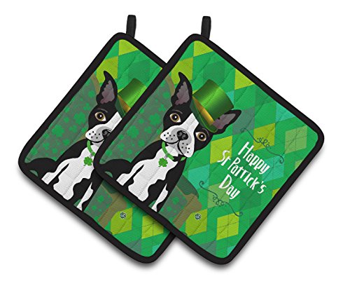 Caroline's Treasures St Patrick's Day Boston Terrier Pair of Pot Holders VHA3006PTHD, 7.5HX7.5W, Multicolor