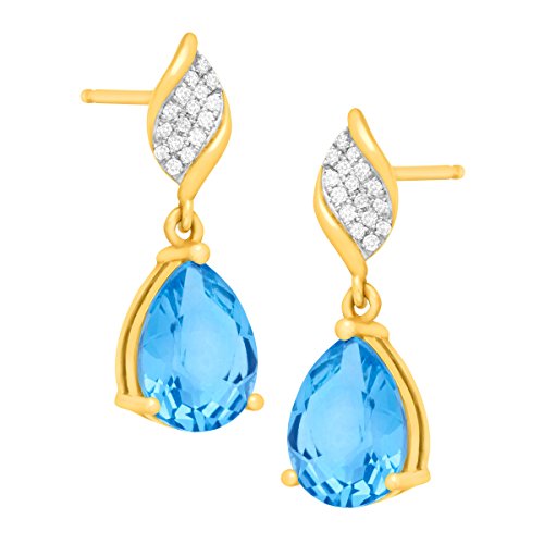 Add a hint of elegance to any outfit with these striking drop earrings. Set in 10K gold, the earrings feature pear-cut natural Swiss blue topaz totaling 4 1/2 ct and diamond accents. Pieces measure 13/16 by 1/4 inches.