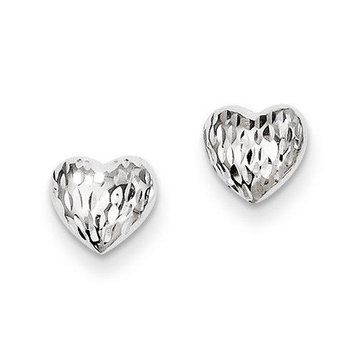 14k White Gold Diamond-Cut Heart Earrings - Measures 7x7mm - .3 Grams in 14k White Gold - Product Attributes: - Open back - Polished - Post Earrings - JewelryWeb Style: QTE68337W - FREE gift-ready jewelry box
