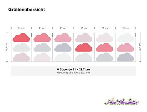I-love-Wandtattoo WAS-10631 Wall stickers Kids "Clouds with girl colors in pastel" 18 pieces, cloud sky for gluing, wall tattoo, wall stickers, stickers, wall decoration