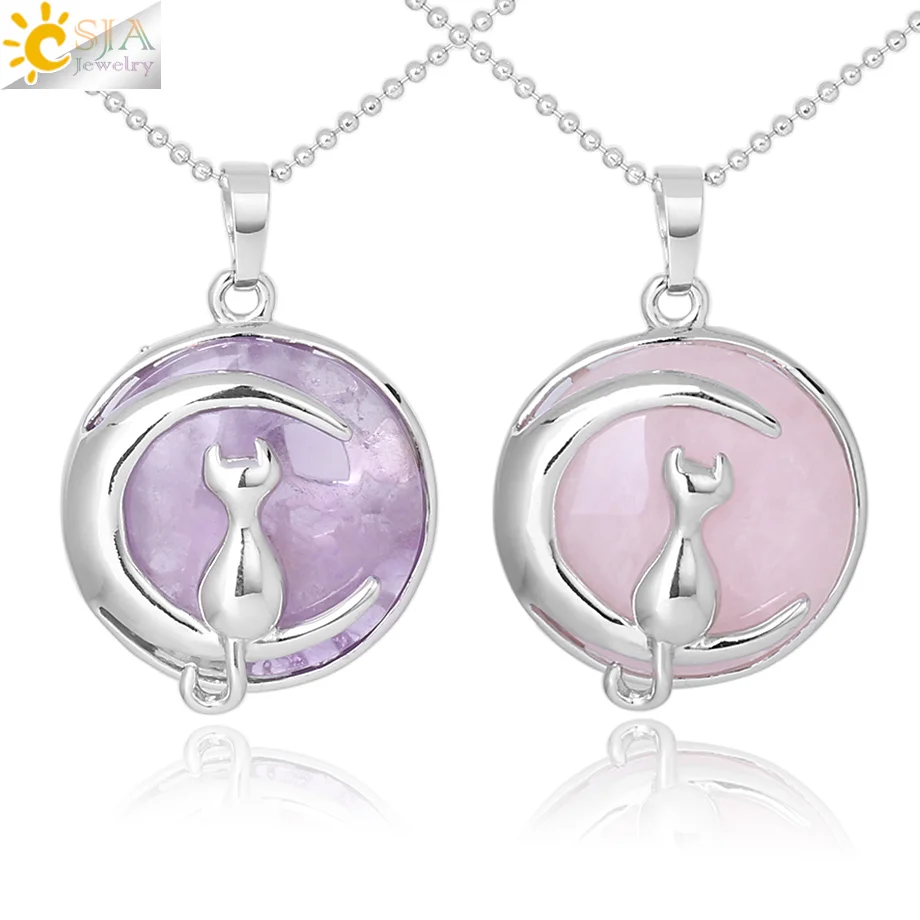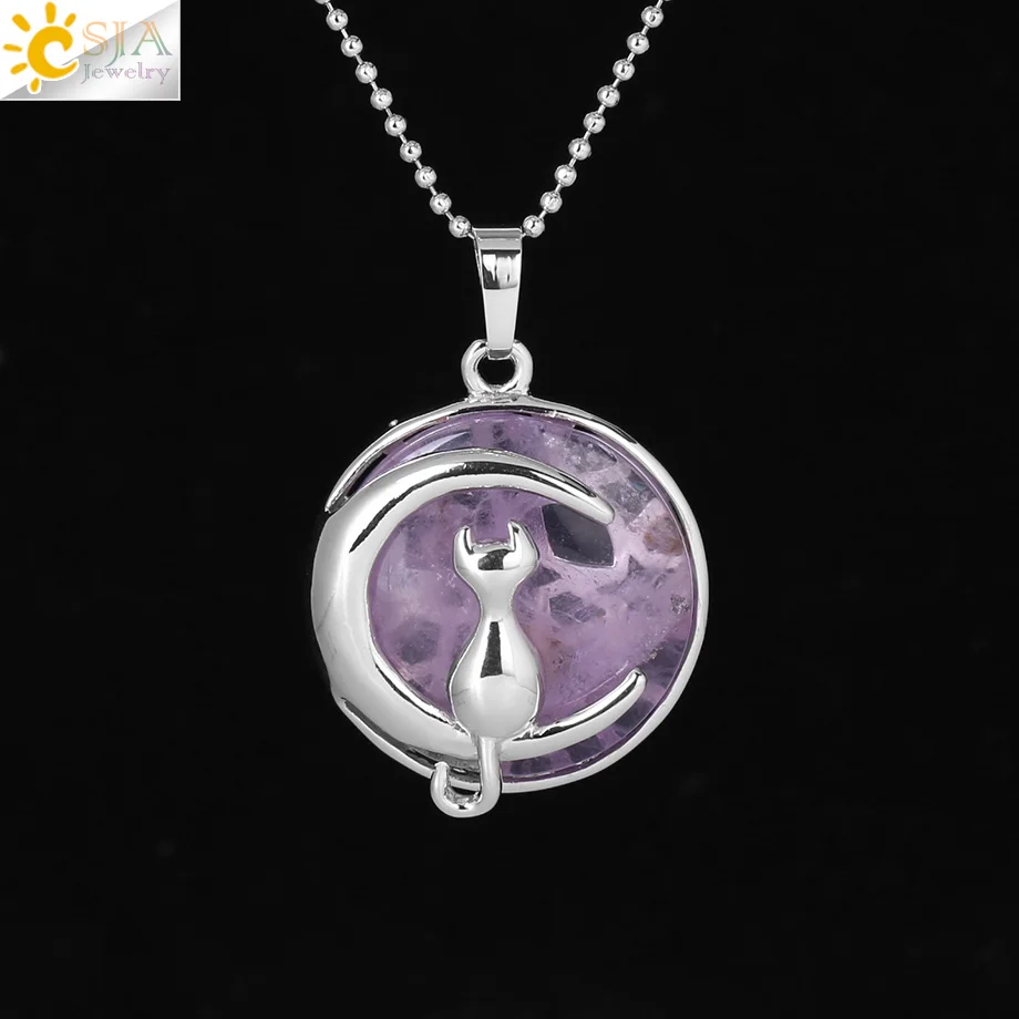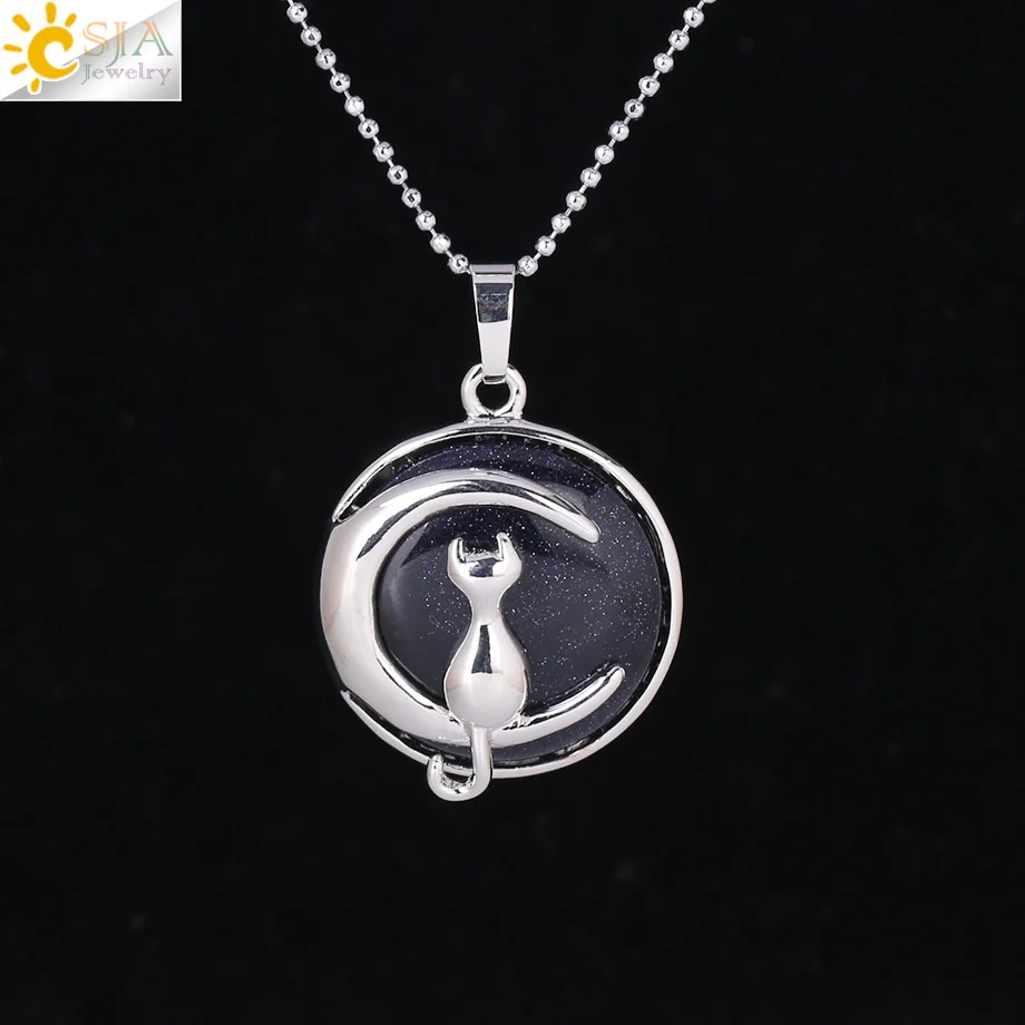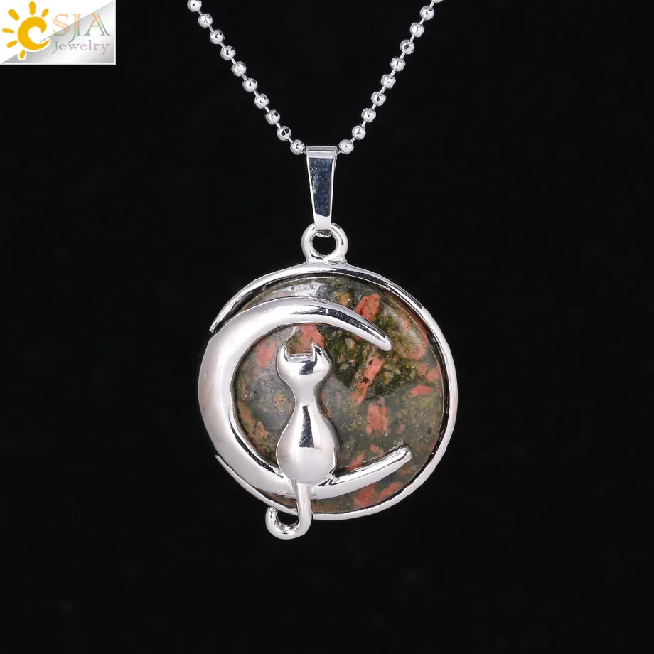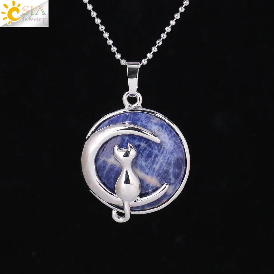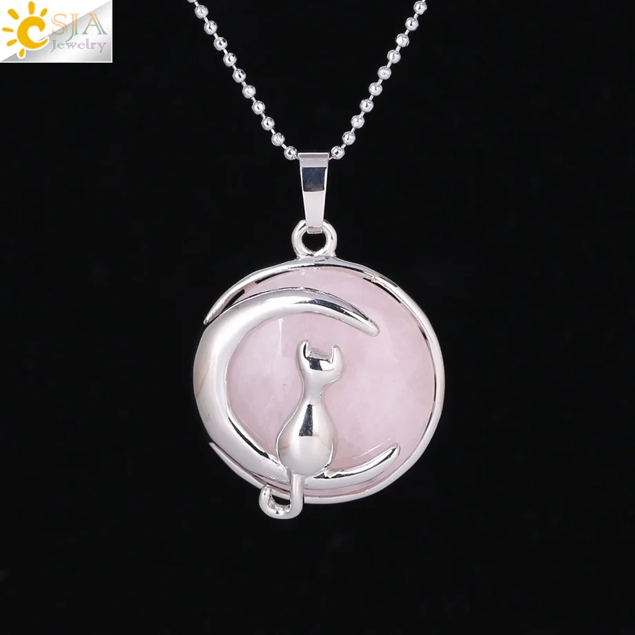 Necklace Feature:Natural Semi-precious Stone + Multiple Colors + Cute Kitten