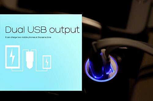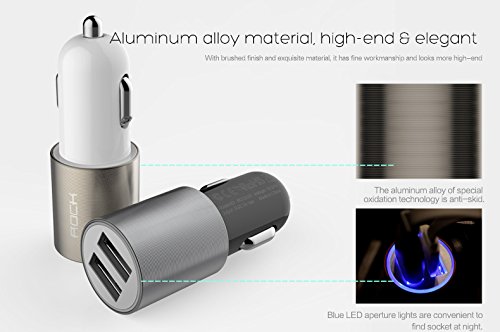 - INNOVATIVE DESIGN - With brushed finish and exquisite material, it has fine workmanship and looks much more high-end then other car chargers. The sandblasted aluminum head of special oxidation technology is anti-skid. Blue LED aperture lights are convenient to find socket at night