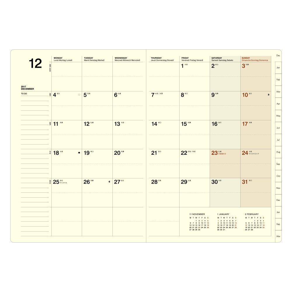 B6 size spread one-week block type notebook.