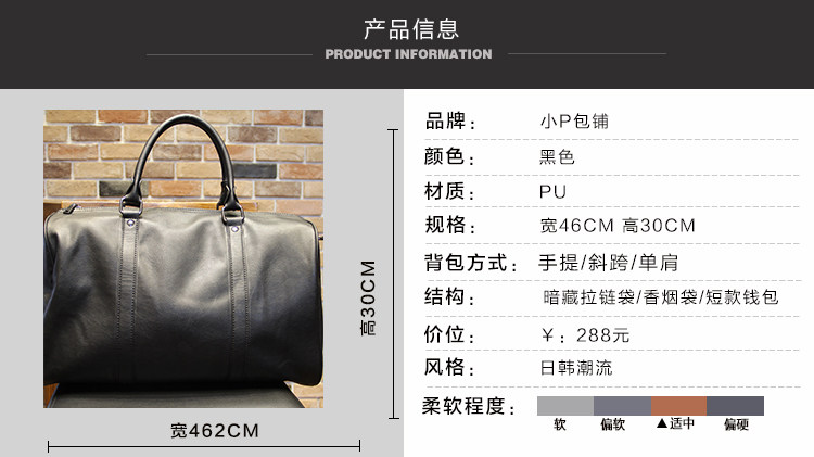款式: 手提包闭合方式: 拉链肩带样式: 单根质地: PUStyle: HandbagClosed way: zipperStrap styles: singleTexture: PU尺寸:宽46CM,高30CM