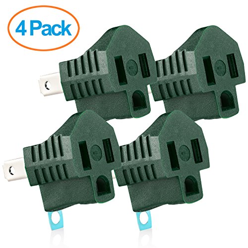 Yubi Power Grounding Adapter Plug - Grounded Outlet Adapter - 2 Prong to 3 Prong Adapter - 4 Pack - Green