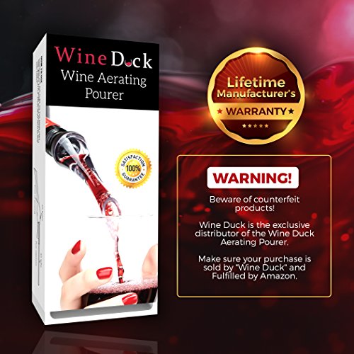 THE WINE DUCK PREMIUM WINE AERATOR Because Life is too short to drink bad wine! - Wine Aerator will help your red wine breathe, allowing it to open up and taste better. - Wine Accessories from Wine Duck are tested by wine drinkers to ensure your satisfaction guaranteed! - Wine Pourer enhances the flavors of your favorite wine. - Wine Bottle Stopper is drip free, keeping your table cloths and counters clean. - Red wine aerator by Wine Duck fits in every bottle for hassle free wine aeration.