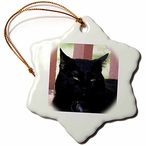 Beverly Turner Photography Black Cat Snowflake Porcelain Ornament, 3-Inch