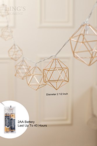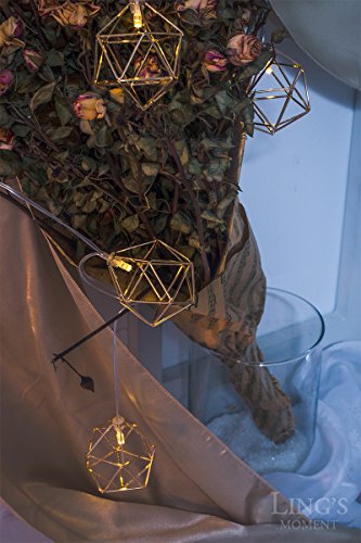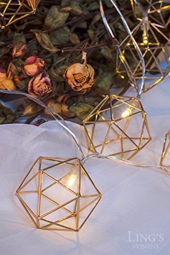 Ling's moment Gold Geometric Metal LED String Lights AA Battery Powered 7FT 10 LEDs String Lights For Wedding Minimalist Bedroom Decor, Vintage Barn, Decorative Bedroom, Patio, Parties (Soft White)