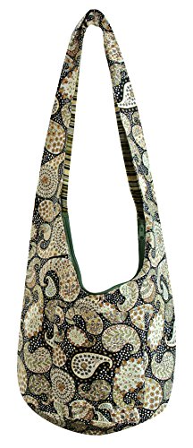-. Title : Avarada Hippie Hobo Cotton Crossbody Shoulder Bohemian Bag Medium Size Paisley Pattren Black
