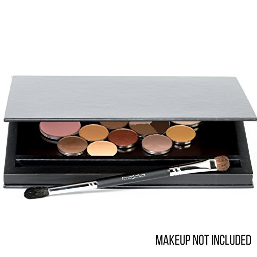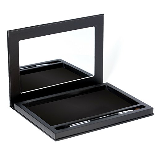 Large Black Empty Magnetic Makeup Palette with Mirror: Organizer Case for Eyeshadow, Blush, Bronzer Pans, Extra Deep, BONUS Makeup Brush Included