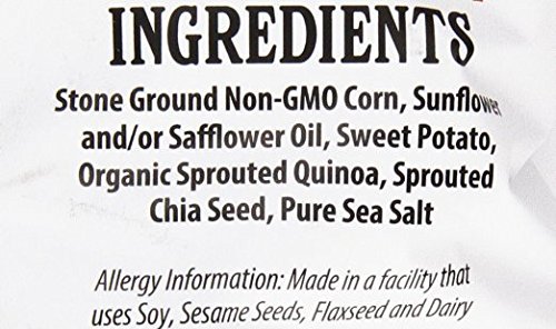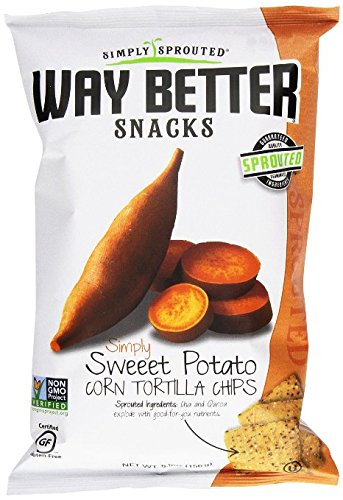 -. Binding : Misc. -. Brand : Way Better Snacks -. EAN : 0855564003420 -. Feature : Every serving has a whopping 420 milligrams of healthy omega 3 essential fatty acids to help keep your cells happy / Each serving of our chips contains at least 17 grams of whole grains / Our recipes limit our ingredients to only those necessary to produce a great tasting and nutritious product / Certified gluten free, non-GMO project verified, kosher and vegan / Pack of 6 -. Label : Way Better Snacks -. Manufacturer : Way Better Snacks -. PackageQuantity : 6 -. ProductGroup : Grocery -. ProductTypeName : GROCERY -. Publisher : Way Better Snacks -. Size : 6x5.5 OZ -. Studio : Way Better Snacks -. Title : Way Better Snacks Tortilla Chips, Simply Sweeet Potato, 5.5 Ounce (Pack of 6) -. UPC : 855564003420