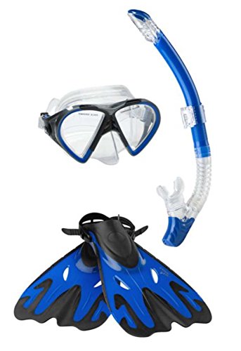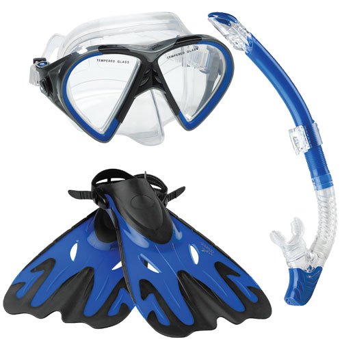 Amazon.com The Hyperfluid Mask, Snorkel, Fin Set from Speedo offers a top-of-the-line performance for snorkeling and deep water exploring--and coming complete with a handy carrying case--is ideal for travel. The set features short blade dive fins with Biofuse technology that combines soft with hard materials for maximum comfort and perfect rigidity for a consistent kick. The fins have an adjustable heel strap for a custom fit. The Hyperfluid mask features a two-window design with interlocking frame technology for optimum rigidity and support in deep water. The mask's safety tempered glass allows divers to swim deeper underwater than a traditional polycarbonate lens, resists scratching, and offers improved clarity for your best possible view in the deep. Thanks to a Comfort Fit liquid silicone skirt, Speedo's trademarked Speed Fit buttons for easy headstrap adjustments, and a split silicone headstrap, the mask provides an easy-to-adjust water-tight seal that is comfortable on the face. Equally well designed, the Hyperfluid Snorkel is splash-resistant to reduce water entry when surface swimming and made for all-day comfort, has a fully adjustable snorkel clip to prevent jaw fatigue. All three components in the Hyperfluid set offer complete and easy adjustability and are made of the most comfortable materials on the market to help serious swimmers get the most out of underwater exploration. What's in the Box? Hyperfluid dive mask and snorkel 0