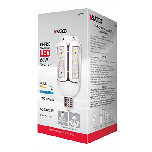 Satco S9752 60W LED HID Replacement 5000K MoGUl Extended Base Adjustable Beam Angle 100-277V Light Bulb
