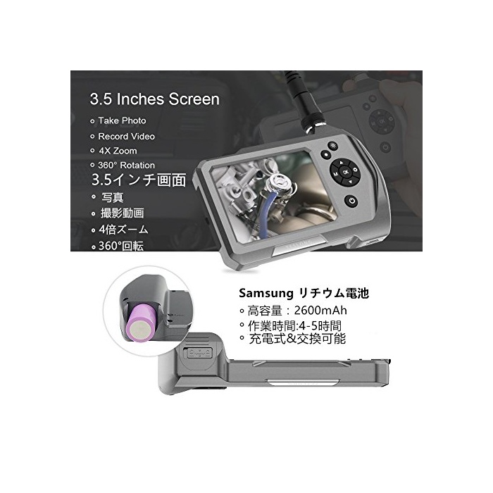 원본상품명: Teslong ?視鏡 ガソリンタンク パイプ ?? 多機能?視鏡 5.5mm極細 360°?面回? IP67防水 いろんな場所に活躍 プロの道具箱付き